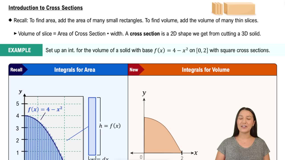 This concept is fundamental in calculus when calculating volumes of solids using methods such as the disk, washer, or cross-sectional area methods, where the volume is found by integrating \( A(x) \) over an interval.