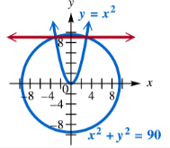 Answer each question. A line passes through the points of intersection of the graphs of y = x2 and x2 + y2 = 90. What is the equation of this line?