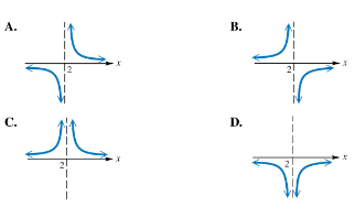 Work each problem. Choices A–D below show the four ways in which the graph of a rational function can approach the vertical line x=2 as an asymptote. Identify the graph of each rational function defined in parts (a) – (d).