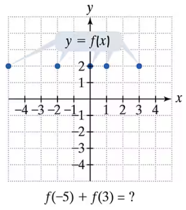 In Exercises 77–92, use the graph to determine a. the function's domain; b. the function's range; c. the x-intercepts, if any; d. the y-intercept, if any; and e. the missing function values, indicated by question marks, below each graph.