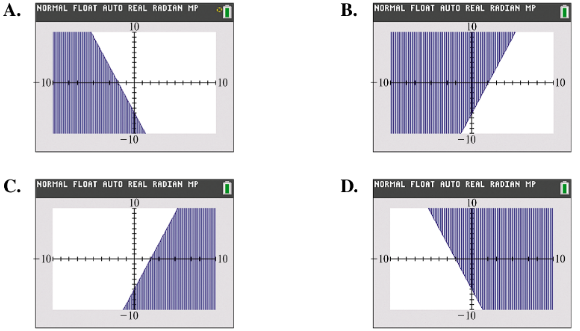 Match each inequality with the appropriate calculator graph in A–D. Do not use a calculator y ≤ -3x - 6