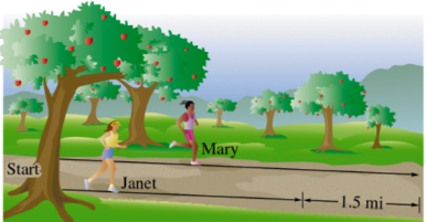 Solve each problem. See Example 2. In the Apple Hill Fun Run, Mary runs at 7 mph, Janet at 5 mph. If they start at the same time, how long will it be before they are 1.5 mi apart?