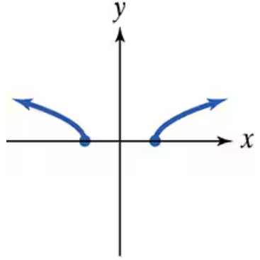 Examine the blue curve on the left side of the graph. Imagine drawing vertical lines at various x-values along this curve and observe if any vertical line crosses the curve more than once.