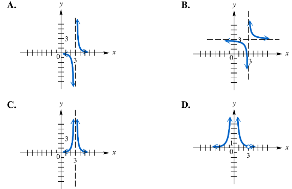 Use the graphs of the rational functions in choices A–D to answer each question.