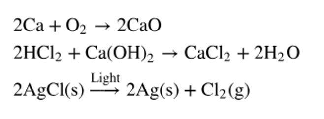 In each of the following reactions, identify the products and reactants, and state what class of reaction is shown.