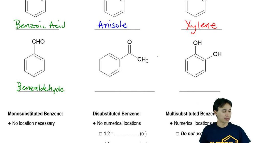 Benzene is a fundamental aromatic hydrocarbon characterized by its six carbon atoms arranged in a ring, with alternating double bonds. This structure allows for resonance, where the electrons are delocalized, contributing to its stability and unique chemical properties. Understanding benzene's structure is crucial for naming and identifying derivatives.