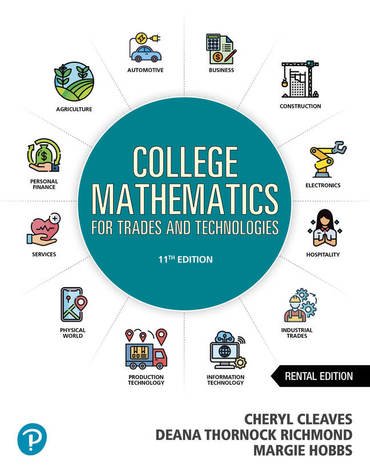 College Mathematics for Trades and Technologies helps you gain a solid understanding of the basic math, algebra and geometry needed for many career programs. The authors present mathematical topics in the context of trade applications so you can connect those concepts to your future career. Career-coded examples and exercises focus on a wide variety of careers, including Healthcare, Business and Personal Finance, Aviation, Hospitality, Industrial Trades, Automotive, Telecommunication, Electronics, Construction, Manufacturing, and more. A 6-step approach to problem solving provides a systematic and logical framework for analyzing, comparing, estimating and solving workplace applications.