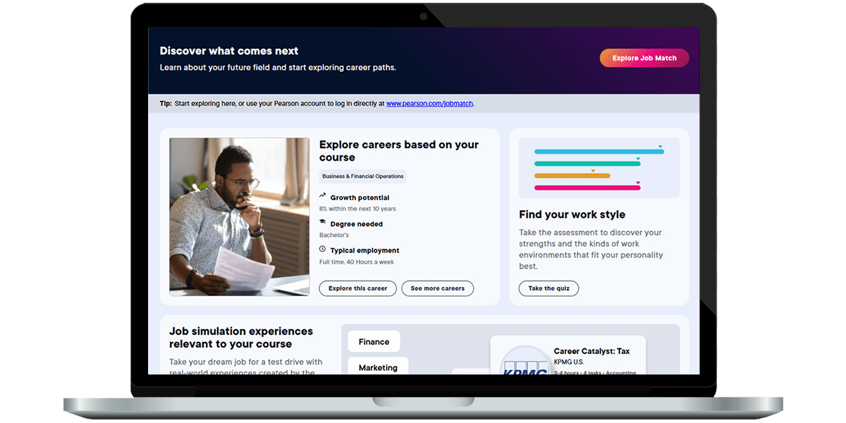 Pearson MyLab offers flexible, accessible tools that promote experiential learning and real-world application; students gain adaptive skills for today’s dynamic job market. Focused on job readiness and career attainment, our innovative resources provide cutting-edge solutions for employability and long-term growth.