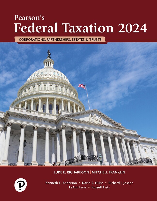 The Franklin/Richardson series is unsurpassed in blending technical aspects of the most recent federal taxation mandates with maximum readability and relevance for students. Pearson's Federal Taxation 2024 Corporations, Partnerships, Estates, & Trusts contains strong pedagogical tools that enable you to apply tax principles within the text to real-life situations.