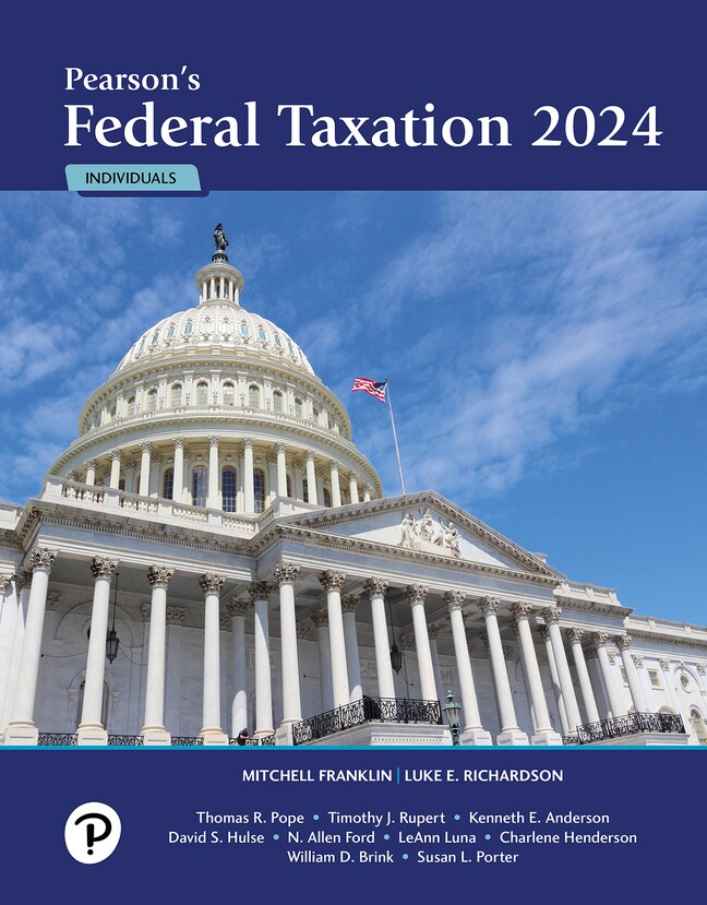 The Franklin/Richardson series is unsurpassed in blending technical aspects of the most recent federal taxation mandates with maximum readability and relevance for students. Pearson's Federal Taxation 2024 Individuals contains strong pedagogical tools that enable you to apply tax principles within the text to real-life situations.