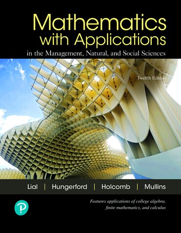 Mathematics with Applications in the Management, Natural, and Social Sciences builds a strong foundation with 4 chapters of algebra coverage before tackling finite mathematics and applied calculus. It motivates students through its grounded presentation and real-world applications. The 12th Edition revises and adds new content, applications, pedagogical devices and exercise sets.