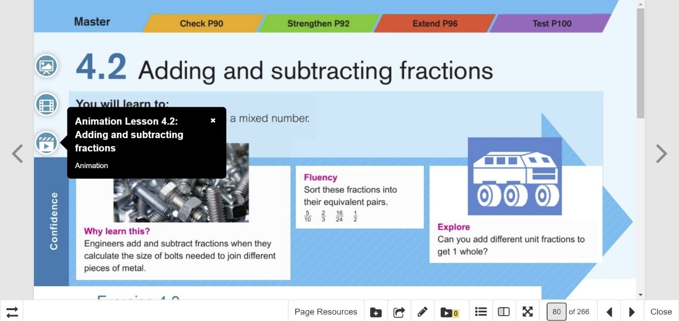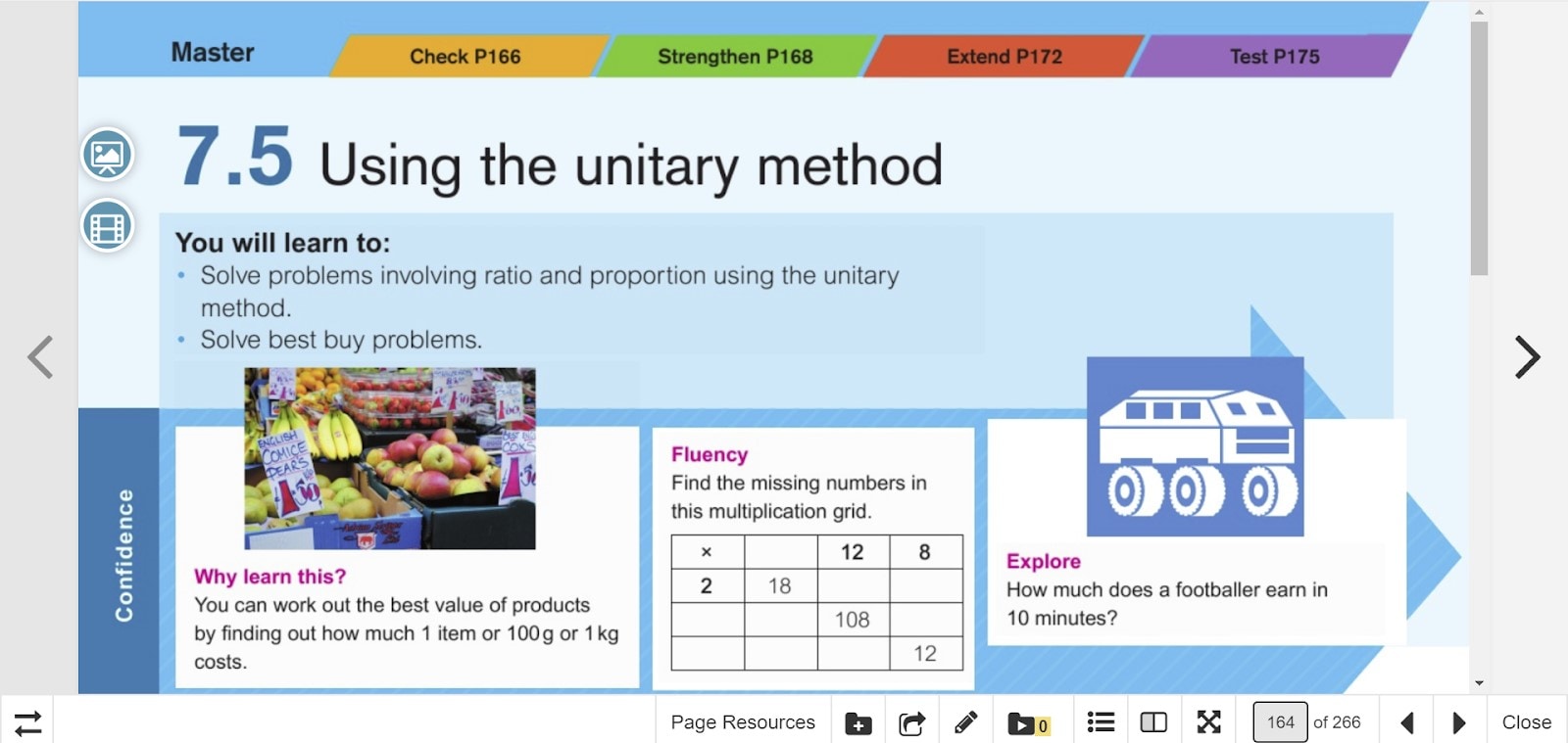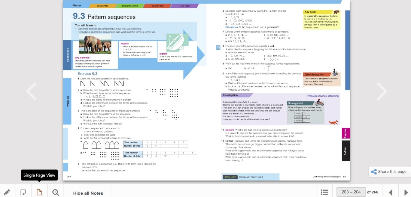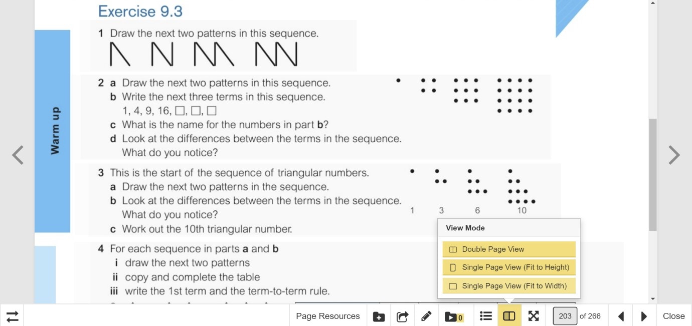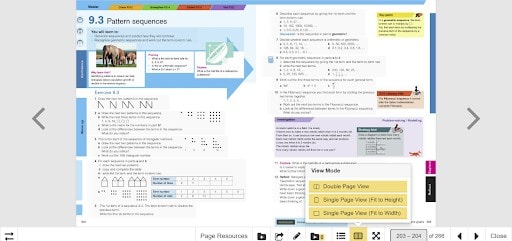 Your students may be joining your lesson on a phone or tablet, so if you show them a whole textbook page on screen they will find it difficult to read. Maths Progress International gives a choice of page views: