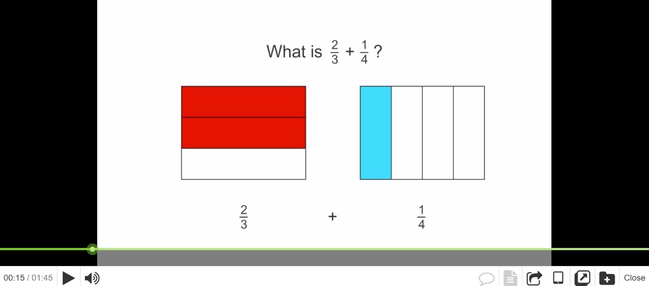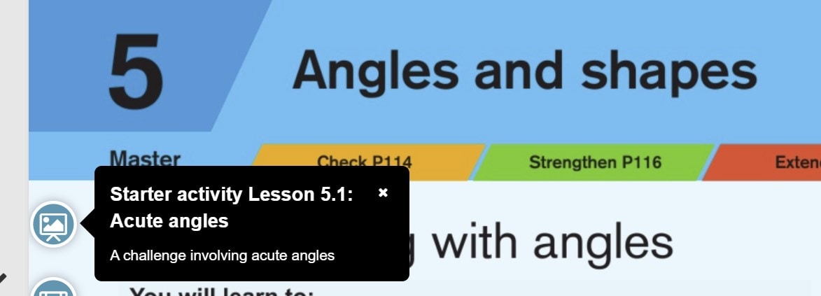 Some Maths Progress International lessons also have animations, that illustrate a concept or a calculation using different representations. Launch the animation from the icon at the start of the lesson. Clicking once shows the description: