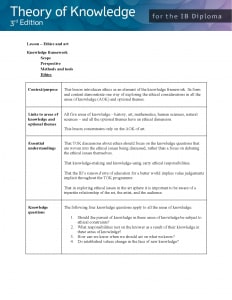 This lesson introduces ethics as an element of the knowledge framework, demonstrating one way of exploring the ethical considerations in all the areas of knowledge (AOK) and optional themes.