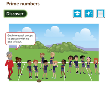 In a word, ‘Discover’ is about curiosity. Think of the picture as an invitation to be creative in order to stimulate children’s curiosity. If it’s a picture of a rocket (Y1 Counting down from 10), can you find or borrow a ‘stomp rocket’ to set off each time children count down to zero? If it shows children in the playground, could you do the activity in the playground (e.g. sorting themselves into equal groups)? Does the picture give you a chance to play a game, or dress up, or tell a story? Or could you tweak the context easily to fit with something your class are interested in? Hopefully thinking about this is time well spent, as well as being fun, because it makes the lesson memorable. We suggest children work in pairs on the questions, giving everyone a chance to have a go, collaborate and share ideas.