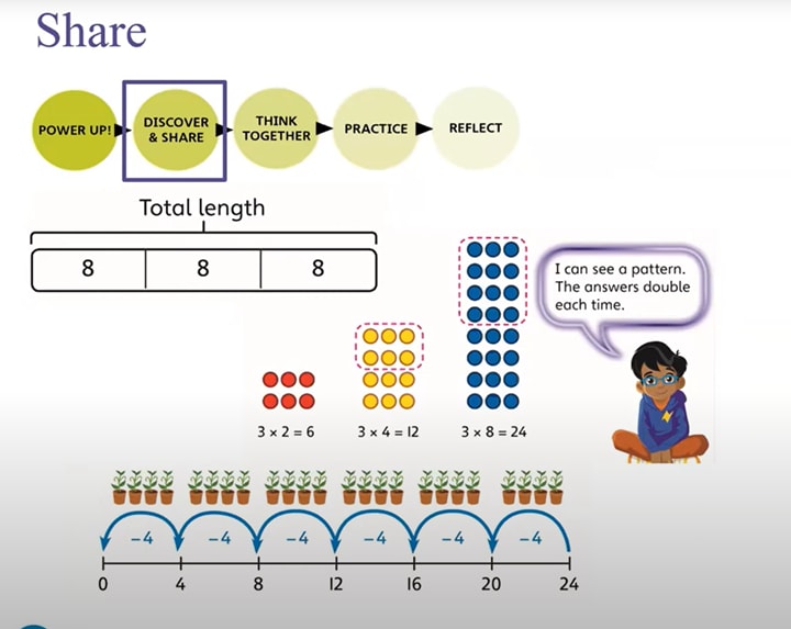 Using ‘Discover’ flexibly: There are two questions on the Discover page, which gives you a chance to consolidate and make sure all children are comfortable with the ideas introduced. If the children get it after the first one, and you feel as the teacher that there is more to be gained by moving on, there’s no obligation to do both.