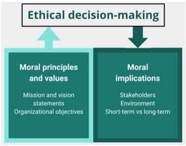- the inputs (moral principles and values) and outputs (the moral implications) of ethical decision-making