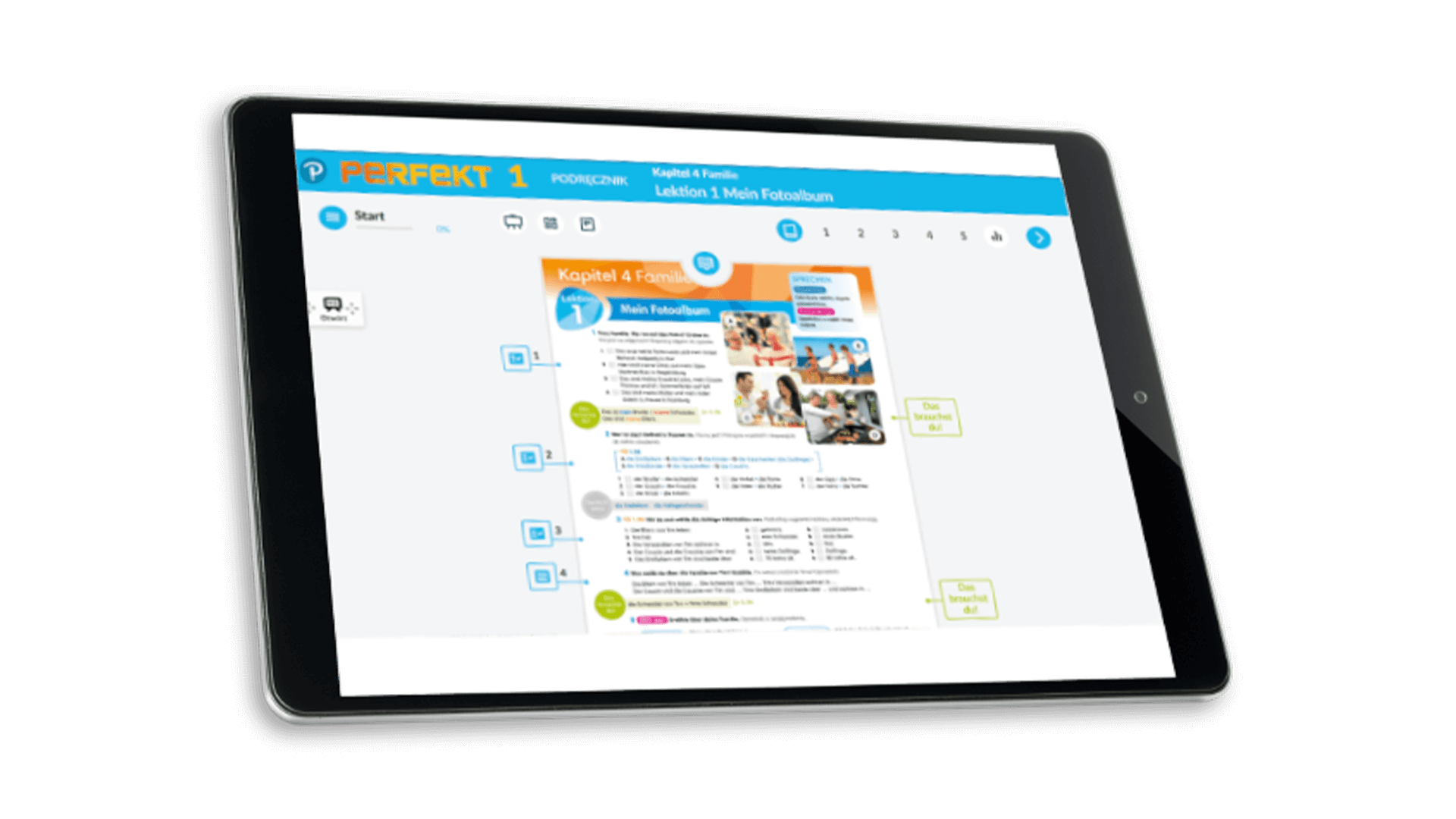 Podręcznik zawiera także lekcje kulturowe Land und Kultur oraz Landeskunde, przybliżające życie, geografię i zwyczaje krajów niemieckojęzycznych.