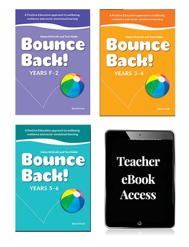 Bounce Back! is a whole school program from Foundation to Year 6 which provides students the skills to 'bounce back' when they experience sadness, difficulties, frustrations and challenging times. This completely updated and revised program contains an updated handbook exploring the most recent evidence-based research that underpins Bounce Back! plus ten substantially revised curriculum units, all with updated topics, teaching strategies and resources:- Core values