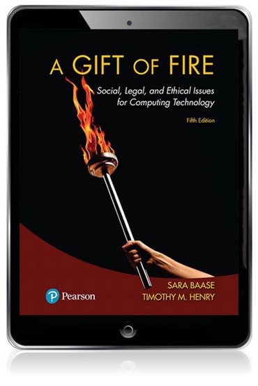 In Gift of Fire, A: Social, Legal, and Ethical Issues for Computing Technology, Sara Baase presents a balanced exploration of the social, legal, philosophical, ethical, political, constitutional, and economic implications of computing and the controversies they raise. With an objective computer scientist's perspective, and with historical context for many issues, Baase covers the issues students will face both as members of a technological society and as professionals in computer-related fields. A primary goal is to develop computer professionals who understand the implications of what they create and how it fits into society at large. This text encourages students to think about the ethics and philosophical direction behind topics but doesn’t necessarily lead students to conclusions. The 5th Edition contains updated material on new topics and examples, outdated material has been removed, and several topics have been reorganized. New material appears throughout, including material on current trending topics such as drones and autonomous cars.